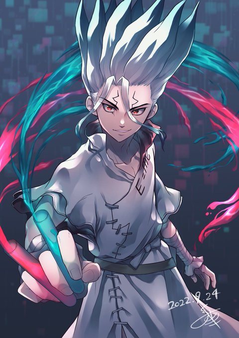 #2022年自分が選ぶ今年の4作 千空オンリー版。 千空描くのめちゃくちゃ好きで、カラーでもしっかり描いてるやつがそこそこある。 1枚目は今年一番どころか人生で一番反応いただけたやつでした、ありがとうございます。 アイドルは装飾忘れてるし、謎ポーズで我ながら笑っちゃう😂