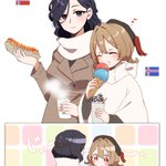#国擬人化版ワンドロツードロ 🇮🇸と🇳🇴で「ヨー口ッパ」「好物」。🍨