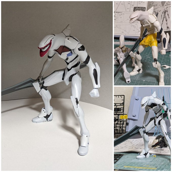 エヴァンゲリオン量産型最終決戦仕様完成しました! パーツの替えがないのでかなりヒヤヒヤしながら制作しました。 古いキットながら頭部パーツの出来が良く劇中そっくりでめちゃくちゃ気持ち悪いです笑 #エヴァ #今月作ったプラモ晒そうぜ
