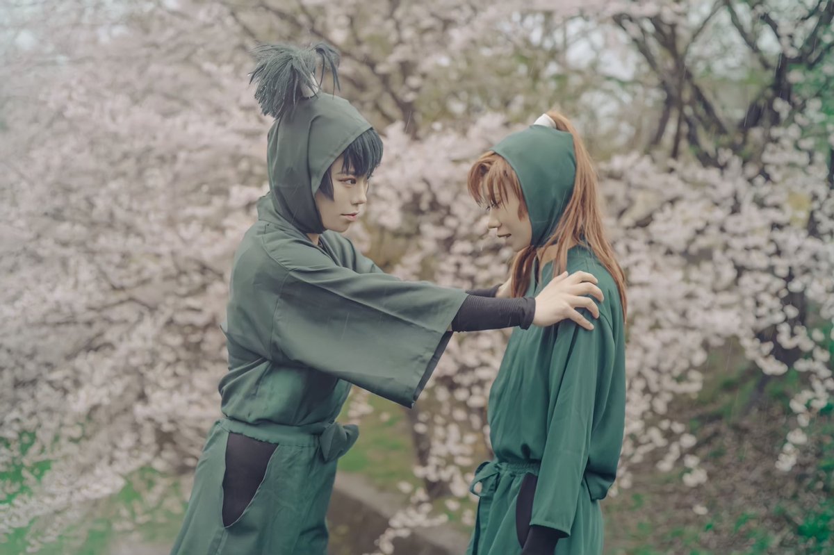 Cosplay:オフショ ⚠︎血糊 オフショすら可愛い6いをみてくれ! もんじろ▶︎りつかさん(@takr12mn ) せんぞ▶︎ぱせりん かめらさん▶︎(@VISOR_havest) #シリアス忍たま46併せ