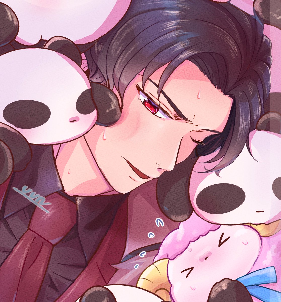 イベントお疲れ様でした!そしてこれは、パンダに埋もれるルシファーとMCひつじちゃん #obeymefanart #Obeymelucifer