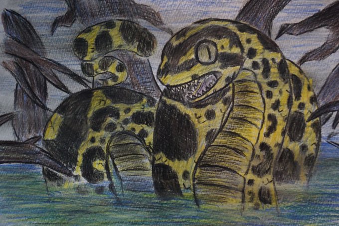 “お手本を一切、何にも見ないで描けそう“と思って描いた爬虫類、両性類のイラストシリーズ……っ❗️ #爬虫類 #両性類 #イラスト #サバンナモニター #パンサーカメレオン #ファイヤーサラマンダー #ベルツノガエル
