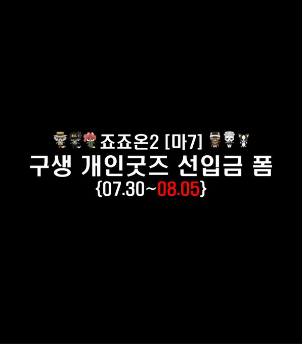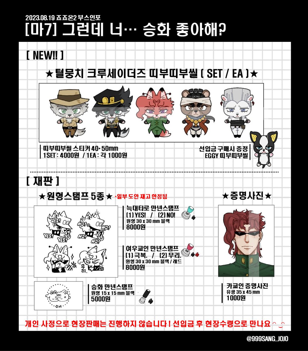 [RT❤️] 추첨 한분께 스티커 세트를 드립니다! --------- 죠죠온2 >마7< 부스에서 판매할 개인굿즈 최종 인포 및 선입금 폼입니다~ --------- 🗓 07.30 09:00 ~ 08.05 23:59 witchform.com/deposit_form/4…
