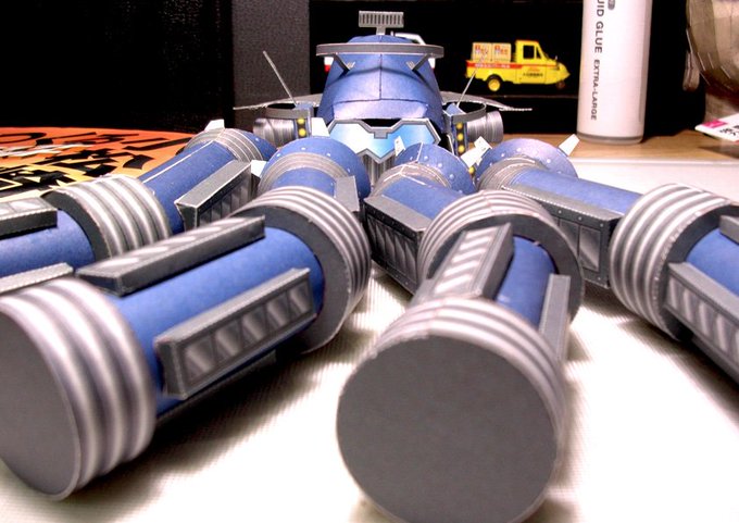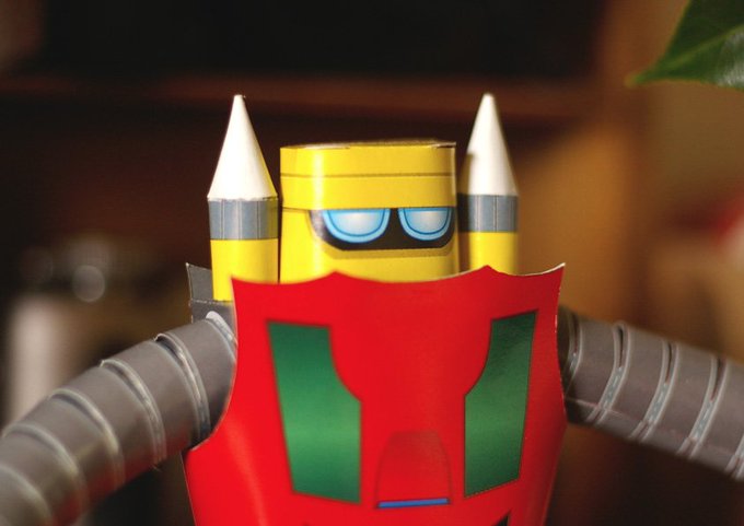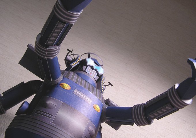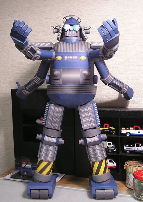 #ペーパークラフト #小松崎茂 #ジャイアントロボット 画伯デザインのこのロボット、手が4本ある。並べてみたら今年の冬は蟹食ってないなあ。プラモが売れてるようだがシンナーは窓開けられる春になってからだ、ステイホームにはコツコツと無心になれる事をしよう。