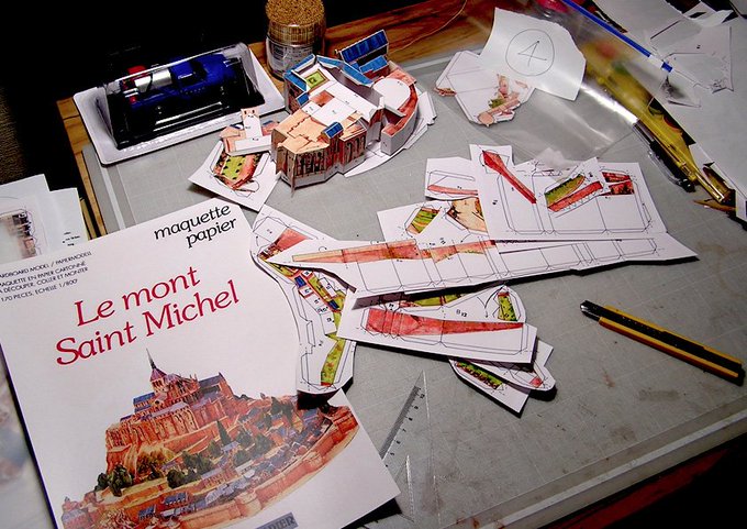 #ペーパークラフト #モンサンミッシェル 城巡りが好きなもので前回では城と書いたが修道院でした。文字はなく図だけのパズルみたいで、やさしくはないね。ひたすら切り抜き作業。60年代を再現したいと考えてるが、これは指先の予行演習です。 twitter.com/99_taro/stat…
