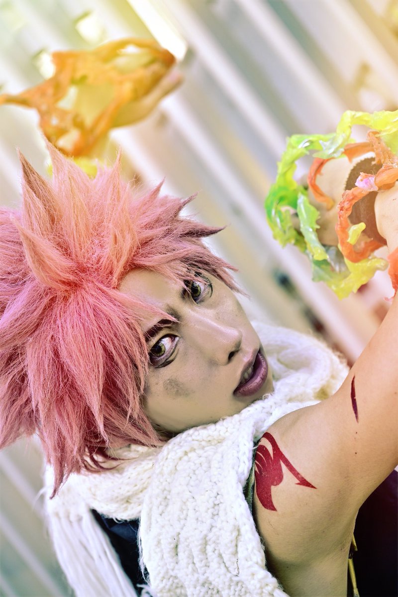 57 169 FAIRY TAIL コスプレ 桜色の髪に 鱗みたいなマフラー 火 竜 サラマンダー ナツ・ドラグニル #ナツの日 #燃えてきたぞ 23/07/02 19:02
