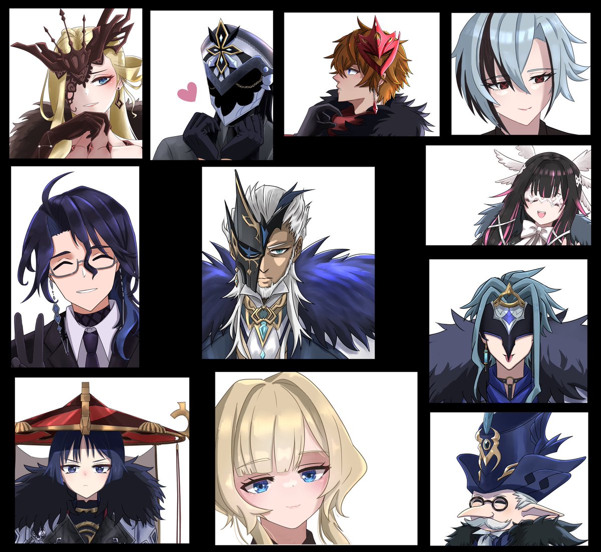 #今月描いた絵を晒そう 11月潜ってファトゥスばっか描いてた…… 需要あるか知らんけどpixivにいずれ解き放とう シニョーラ、パンタローネ、タルタリヤ スカラマシュ、ドットーレ、あと6人か #原神 #GenshinImpact #scaramouche #dottore #pantalone #夜蘭