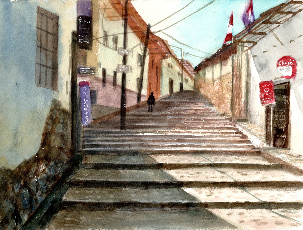 南米ペルー、クスコの散歩道 娘の送ってきた画像を参考にして描いてみました。 #水彩画 #透明水彩画 #クスコ #ペルー