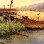 16 135 少し前に描いた作品で、礼文島の小さな港の夕景です。 #水彩画 #透明水彩画 19/12/17 20:22