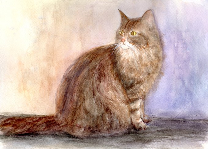 猫の絵をはじめて描いてみました。 #水彩画 #透明水彩画 #絵画