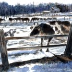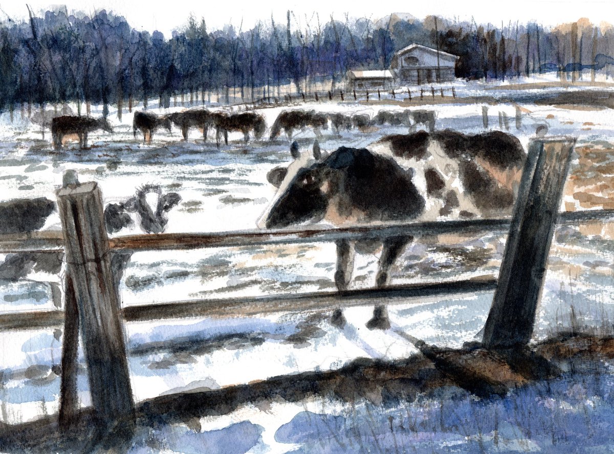 2 43 「雪の牧場」日光、光徳牧場で元気な牛さん達に出会いました。 #水彩画 #透明水彩画 #光徳牧場 20/02/01 08:24