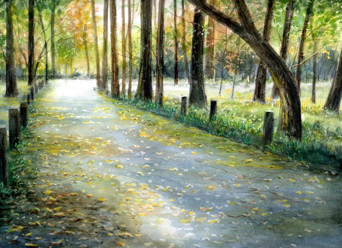 3 60 新座の平林寺に残る武蔵野の面影を今に残す風景 #水彩画 #透明水彩画 #風景画 #平林寺 #武蔵野 20/03/11 23:44