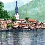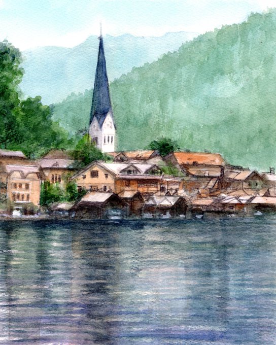 オーストリアのハッシュタルト #水彩画 #透明水彩画