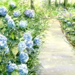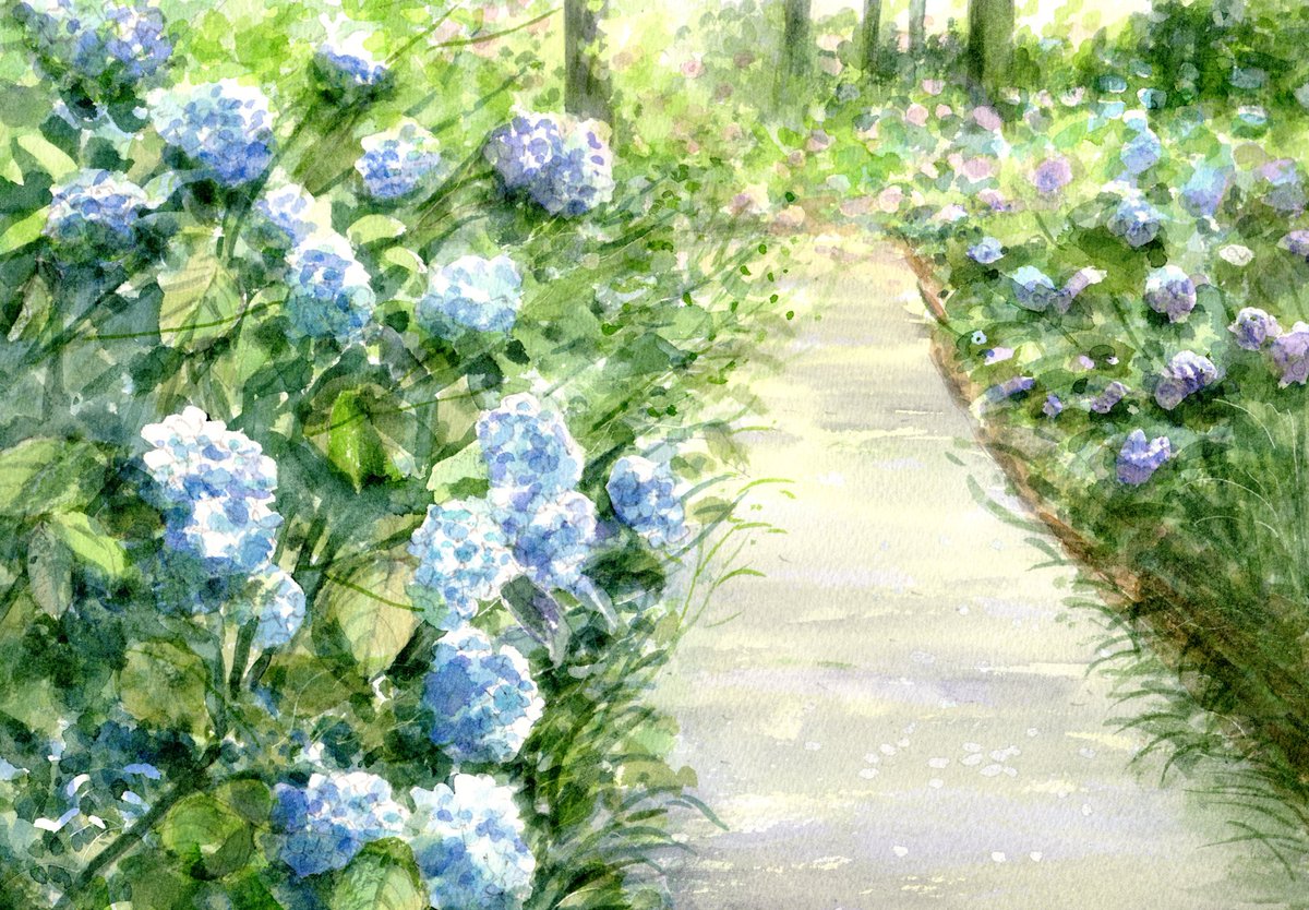 「あじさいの咲く頃 」 #水彩画 #透明水彩画 #風景画