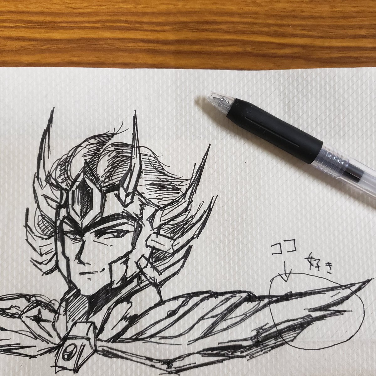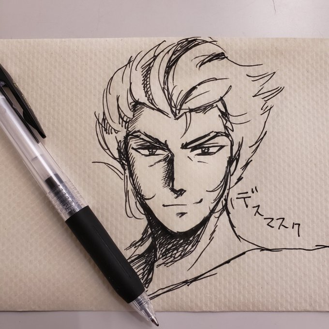 今日の落書き。 久しぶりに闘技場に行って汗を流そうかと思ったけど、あの兄弟に会うと面倒なので止めたデスマスクを描きました。