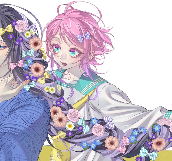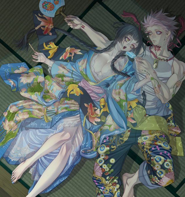 コミッションでイチャつきちらかすマジョコと千両を描きました🪷 常夏か?