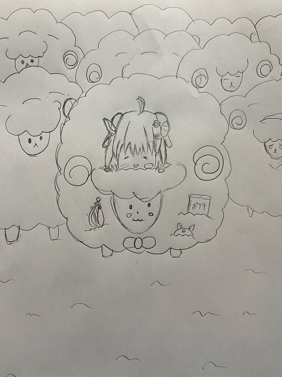また絵を描いてみました^ - ^ そろそろ色つけをしたいけど時間と技術がないから手を出せない💦 わためさんはやはりかわいい💕 #イラスト好きさんと繋がりたい #いろんな絵描きさんと繋がりたい #絵描きさんと繋がりたい #絵柄が好みって人がいればいいなぁ #つのまきあーと #ホロライブ