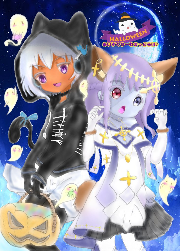 9 51 けいちゃんとPo…ヘル様ぁ!! けいちゃん黒猫とヘル様たぬき仮装の 「👻Trick and Treat!🎃」 ibisPaint 少しづつ慣れてきた。🎩 #すけいっちぶっく #へるあーと 19/11/02 04:36