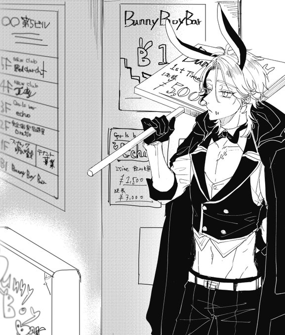 のっぴきならない理由によりばにーぼーいのお店でつまらなそうに客引きをしている⚰️くんです(?)