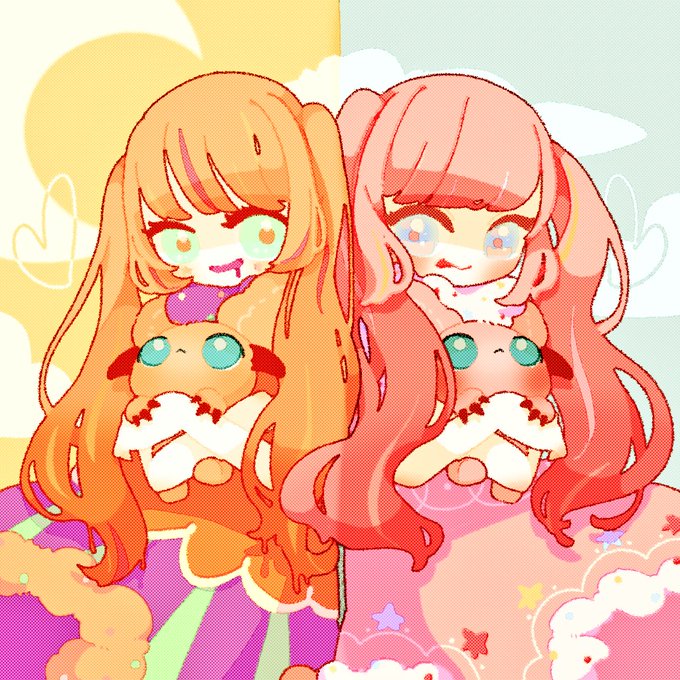 16 98 以前の下描きに色合いつけました ふたごちゃんっぽくてつい… #リヴリーファンアート 22/08/06 09:17