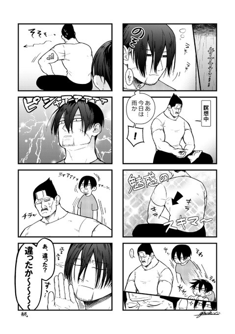 牛尾の日だ~!! 雨の日は朝トレを中止して瞑想する先生と、めずらしく起きてきた尾 #牛尾の日