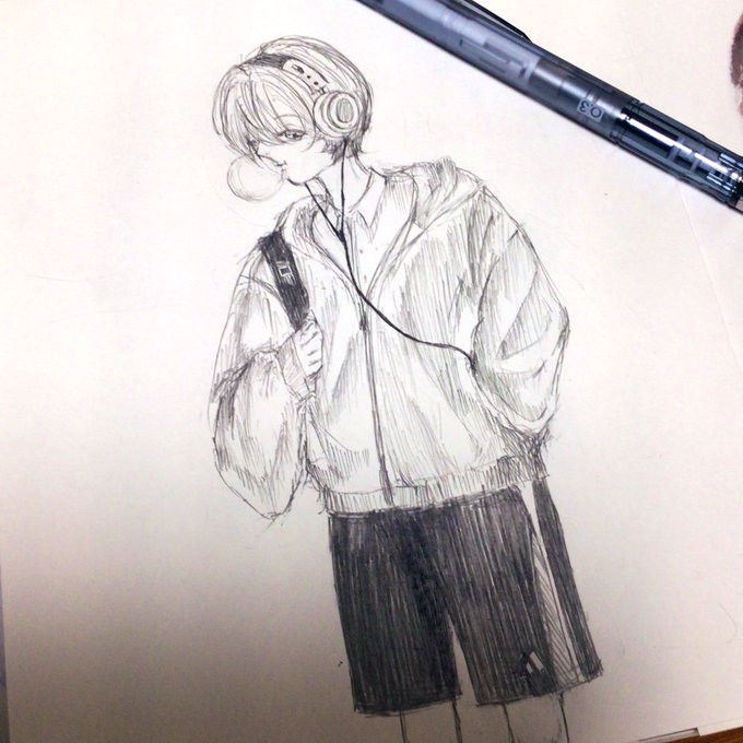 昨日、駅のホームで、マジでこんな感じの女の子がいて、可愛すぎたので絵に納めました。#イラスト #イラスト好きな人と繋がりたい #絵師さんと繋がりたい #シャーペン