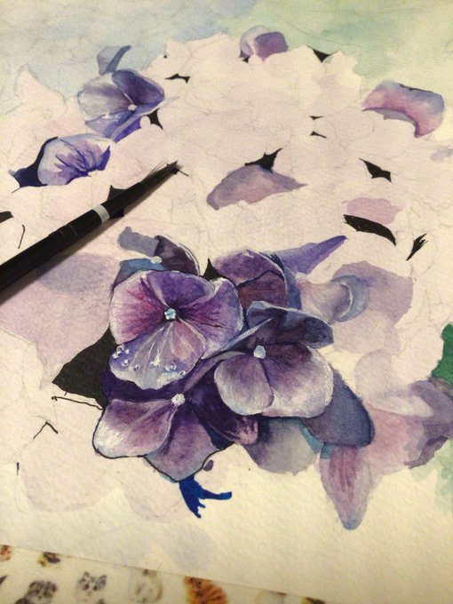 0 5 もうちょっとで完成!期限やばい #水彩画 #イラスト #紫陽花 #水彩画好きな人と繋がりたい 23/03/21 22:09