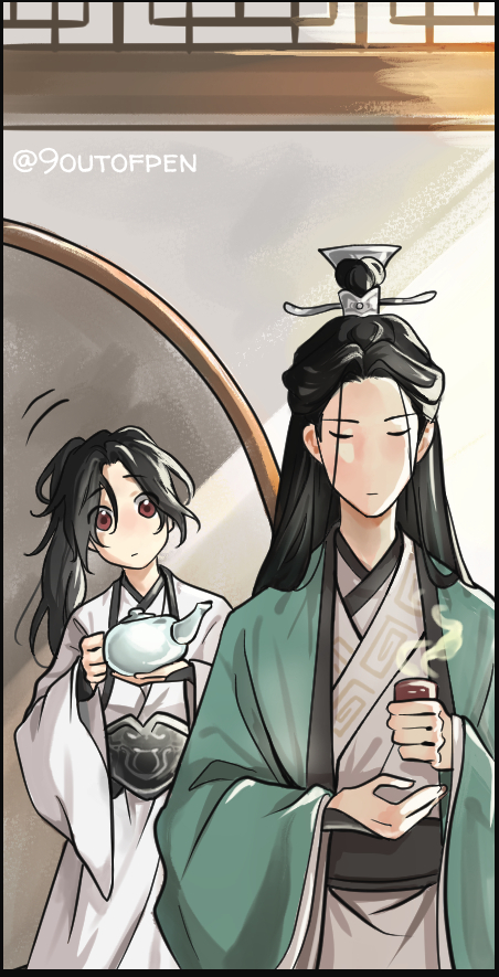 Coloring is coming along! <3 Isn't Luo Binghe so attentive? :3 (Frickin Teacher's Pet lol) #bingqiu #svsss #mxtxfanart #ScumVillainsSelfSavingSystem #LuoBinghe
