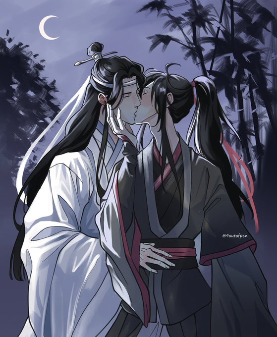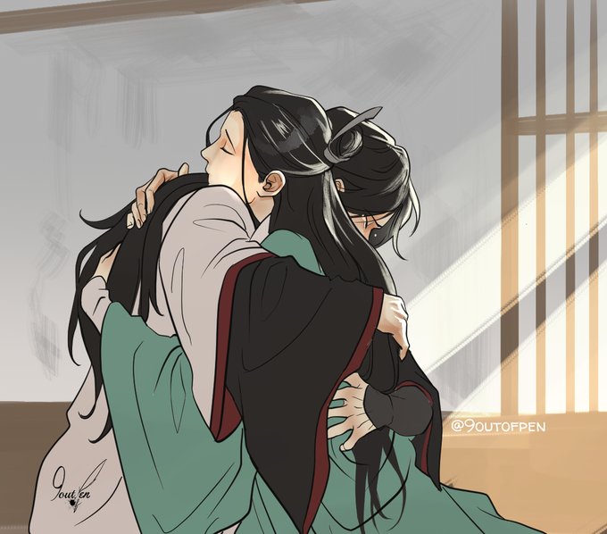 Did I ever share this version? I'm so excited to be making this part of an mxtx "Hugs and Kisses" postcard pack!💕 (My online tip jar: ☕️ ko-fi.com/9outofpen) #WangXian #MDZS #MoDaoZuShi #mxtxfanart #WeiWuxian #LanWangji