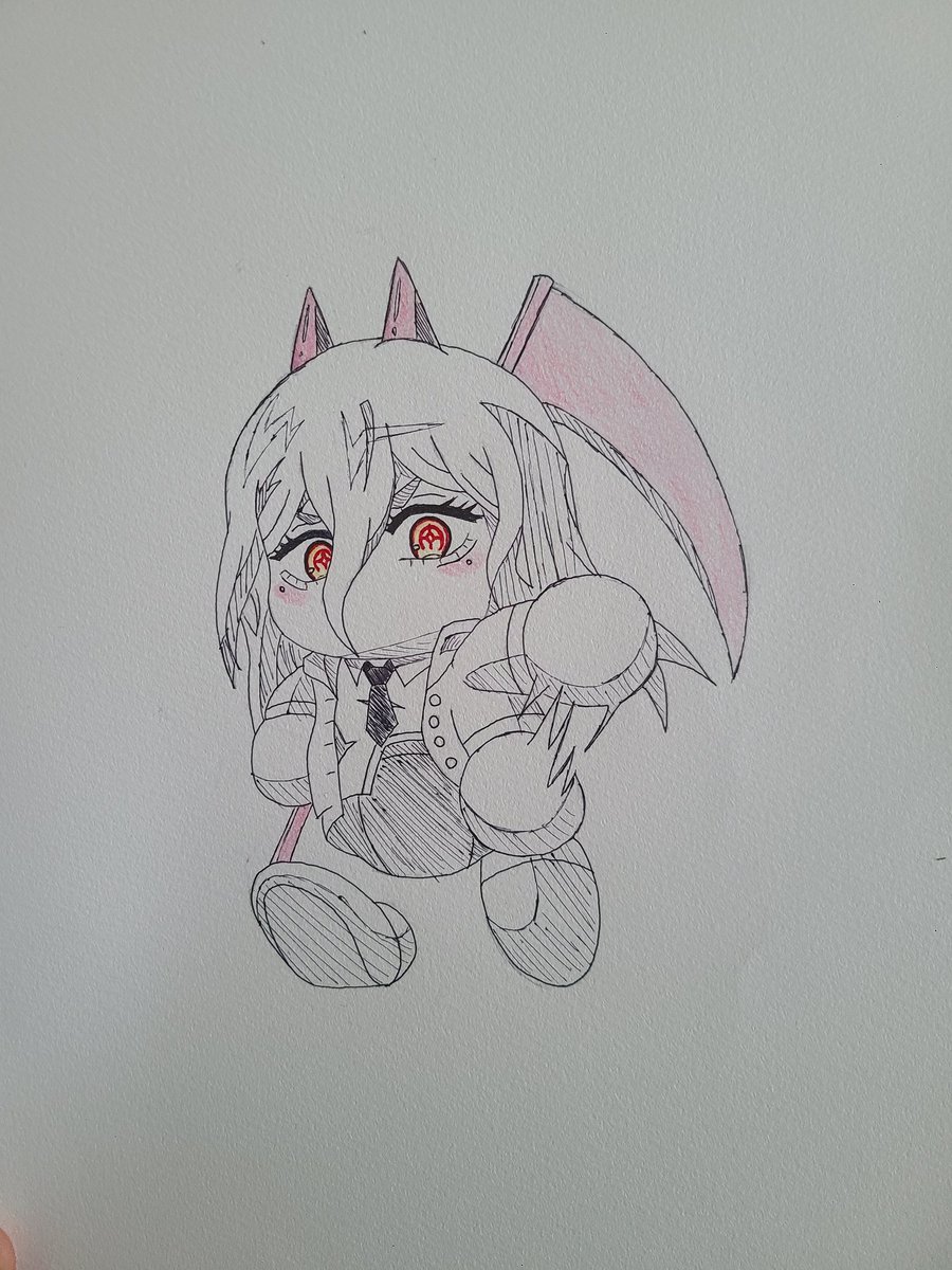 #イラスト #チェーンソーマン パワプロパワーちゃん。色は奇跡的にあった黄色鉛筆と赤鉛筆と赤ペンで塗った。このほんのちょっと塗っただけで飽きたけん多分色塗り向いてない笑
