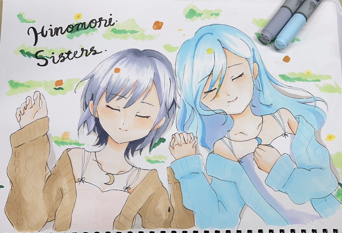 久々のアナログ📸 日野森姉妹好きだー #prsk_FA #プロセカ #プロセカイラスト #日野森雫 #日野森志歩 #レオニード #コピック