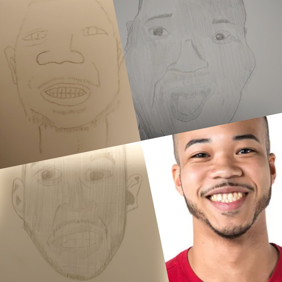 #絵描きさんとつながりたい #絵描きさんフォロバ100 ブライアンさんを描き始めて3日目 もっと上手く描けるように努力していきたいと思います! 左上→一回目 右上→二回目 左下→三回目 右下→ご本人