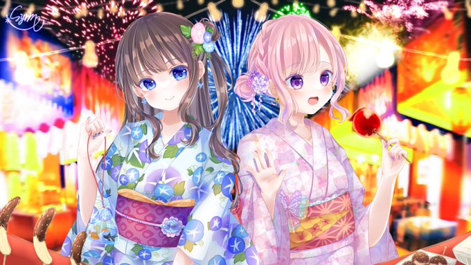 汐ちゃんとさーもんちゅちゃんの夏祭りイラスト描かせて頂きました✨ めっっっっっっっっっちゃ可愛い!!!! 可愛いの塊!!途中の掛け合いとかも全部可愛いので是非最後まで聴いてください🥰👍 MVも素敵╰(*´︶`*)╯♡ twitter.com/salmon_pubg/st…