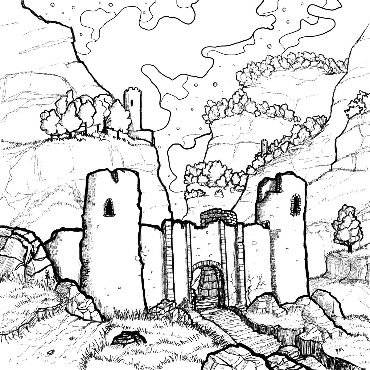 WIP progress, if but slowly. Working on lots of little lines now. #wip #wipart #illustration #landscapeart #drawing #lineart #digitalart