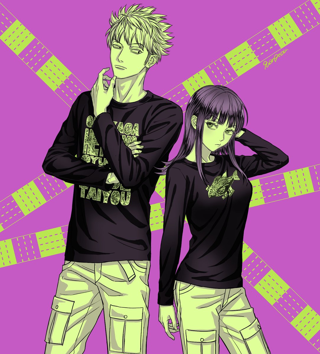 使い回しかつ手抜きで忍びないですが色つけてみました〜イコさんの瞳グリーンなのいいよね…弓場ちゃんの眼鏡は思ったより黄色だった せっかくなのでタグお邪魔します #弓場隊員お誕生日おめでとう #弓場拓磨誕生祭2021 #イコさんお誕生日おめでとう #生駒達人誕生祭2021