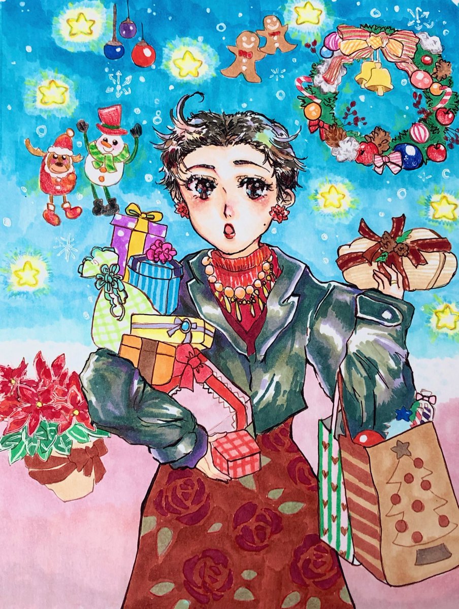 クリスマス準備🎁☃︎ 昔のCMの某女優さんをイメージして 雨は夜更け過ぎに 雪へと変わるだろう #クリスマスイブ #創作イラスト #コピック #MerryChristmas2021 #冬の創作クラスタフォロー祭り