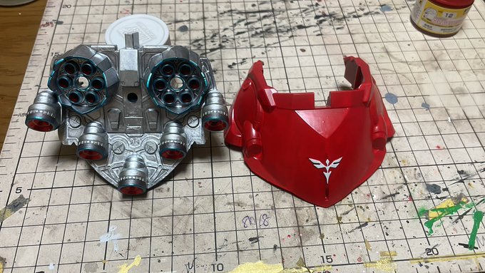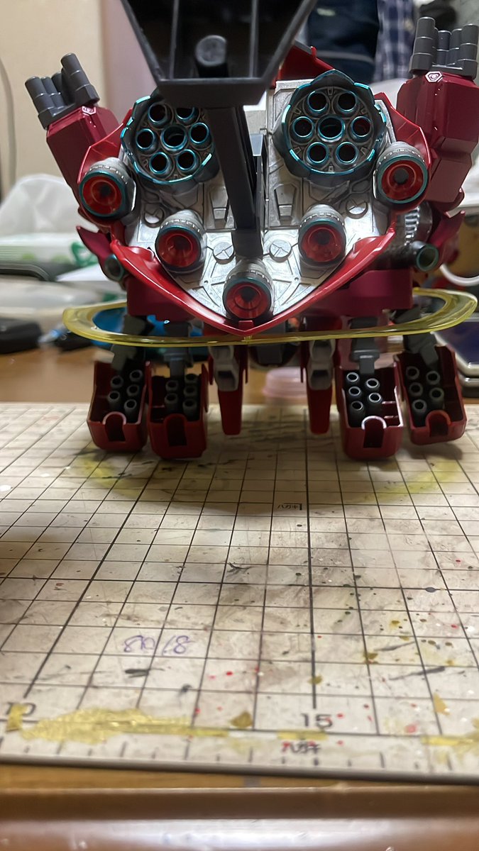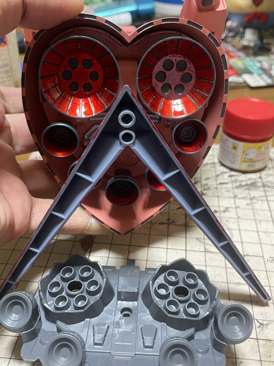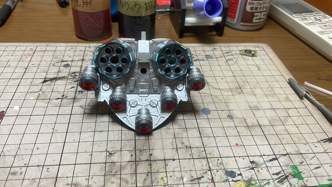 昨夜から筆塗りしていたジオングのスカート内部塗り分け完了しました🤗 ちょっとくどかったかな🤔 以前のHGのジオングと同じにするのは何か変わり映えなくてイヤでしたので配色を変更してみました😅 #ガンプラの画像貼るとRTされると聞いて #ガンプラは自由だ #ガンプラ