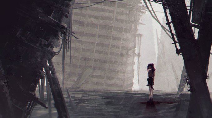 #illustraion #イラスト 崩壊した世界に地雷系女子ひとり。