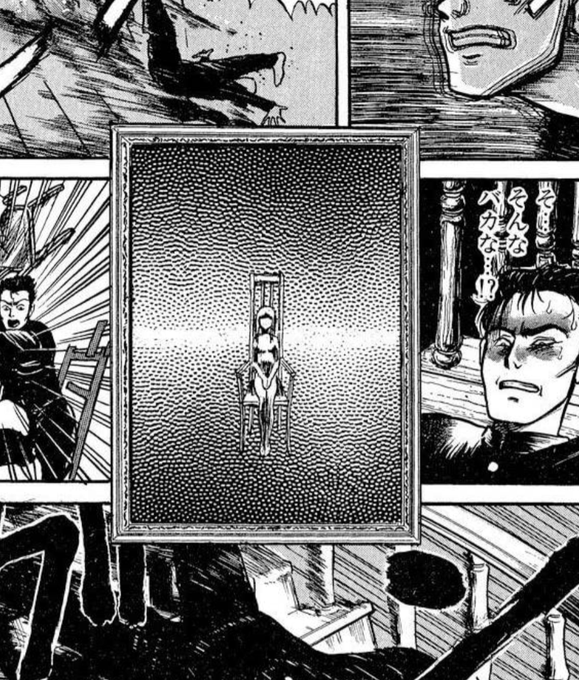 左の『うしおととら』から引用した画像の、中央の額の中に貼られているトーンが欲しいのよ。 右は欲しすぎてランダムドットトーンを重ねて削って作った自作トーンなんだけど…やっぱ再現度が低いんだ。