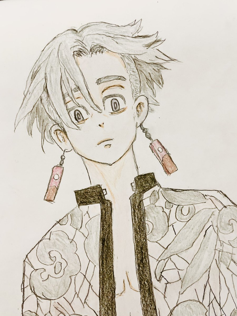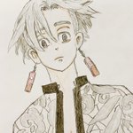 イザナくん完成! やはりイケメンを描くのは楽しいね✨服の柄は大雑把だけど😅 #東京卍リベンジャーズ #東リベ #TokyoRevengers #黒川イザナ #イザナ #模写 #色鉛筆