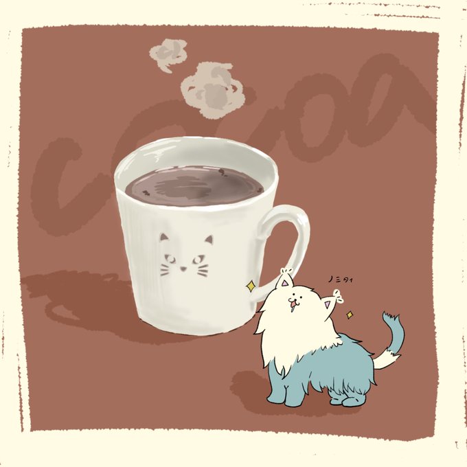 ココア飲みたい気分。 #猫 #猫イラスト #イラスト #癒し #ゆるいイラスト #ココア #LINEスタンプ #猫好きさんと繋がりたい #cats #illustration
