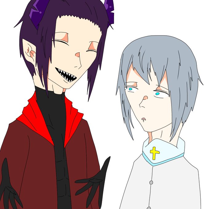 #創作クラスタさんと繋がりたい #創作好きさんと繋がりたい #創作イラスト #創作キャラ アカエル「カハハハ天使様は、 意外と小さいんだな!」 バーグ「・・・・・・・・。」