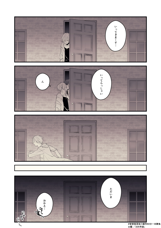 50 163 お題:「205号室」 バーテンダー×詩人 🎉ワンドロ205回おめでとうございます!🎉 #密誉版深夜の創作60分一本勝負(@hisokakun_okite ) 21/09/24 23:05