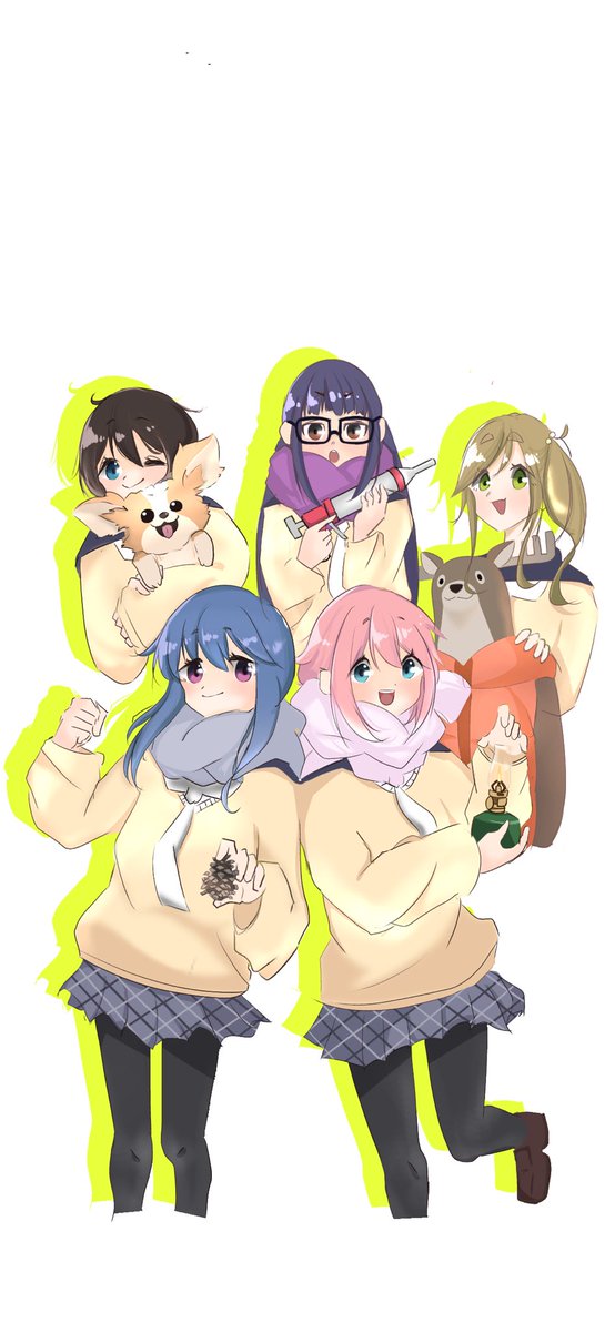 ゆるキャンの集合絵!! みんなと言ったらというものを持たせました😊 頑張ったのでみてくだせぇ!!! #ゆるキャン #イラスト