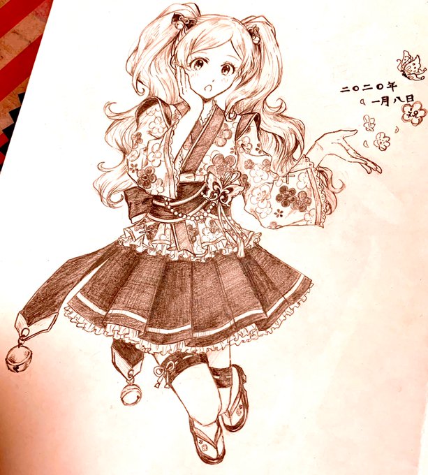 42 84 #エミリー・スチュアート生誕祭2019 エミリーちゃんお誕生日おめでとう!🍵🌸扇の耳飾りの贈り物を着けてみてもらったらくがき🎁☺️ 19/01/08 19:08