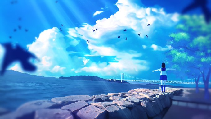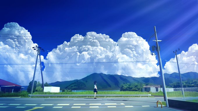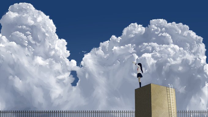 #2月になったのでフォロワーさんに自己紹介しようぜ 主に青い風景を描いています☁ ☁ ☁ ☁ ☁ ☁ ☁