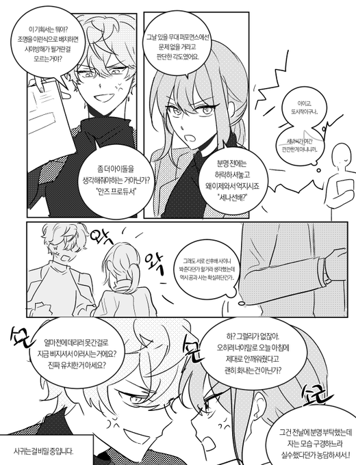 실트 갔는데 기념해서 제가 지금 뭐 그려서 올릴건 없고 이즈안즈 이번 회지 후기에서 그린 컷 올리고 갑니다.. 기쁘네요.. 내가 너흴 진짜 좋아하긴 하나봐.............