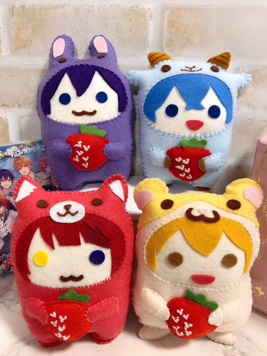 なーくんの放送聴きながら完成〜💜✨✨ 🍓の♡が上手く出来たー!と思うww ❤️💛💜くんが揃いましたーー! #すとぷり #すとぷりギャラリー #すとぷり手芸部 #ななもり。くん #なーくん #りいぬくん #るぅとくん #すとぷり公式生放送 聴きながら💜