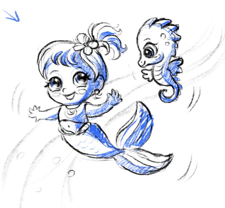 To date, I have this sketch, which I will definitely make in the vector.) Kawaii mermaids-girlfriends are already three! These are the associations that arose on the task #Sunday -a carefree beach holiday! #MerMay2021 #MerMay #mermaid #6dayofMerMay #alinart #MerMaykawaii #sketch