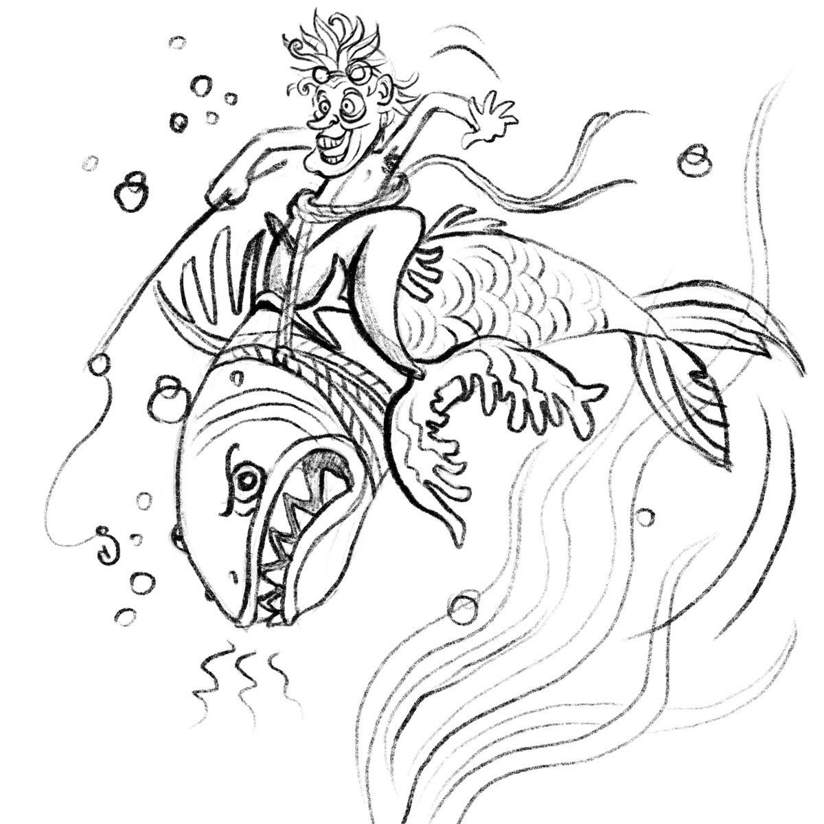 Just a great #original for the 18th day of Mermay #18day @mermay_official #MerMay #MerMay2021 #wacommermay2021 #wacom #mermaid #alinart #cowboy #angryfish #madman #digitalart #underthesea #childrenillustrator #18dayofmermay #handdrawn #humor #redvine #sketch #humor #onhorseback